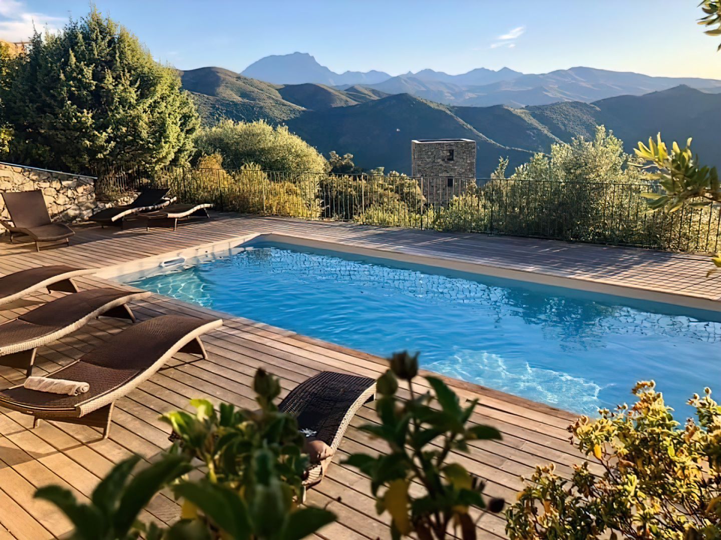 Découvrez le Campu Latinu avec ses 3 appartements situés dans une magnifique demeure aux murs en pierres, sa piscine nichée entre ciel et terre et une vue panoramique sur le village, la vallée de L'Ostriconi jusqu'à la mer.